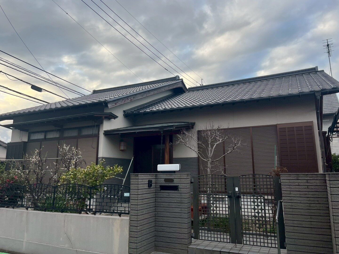 外壁塗装 外構・門扉塗装 雨樋塗装 戸建て 和モダン モルタル 陶器瓦