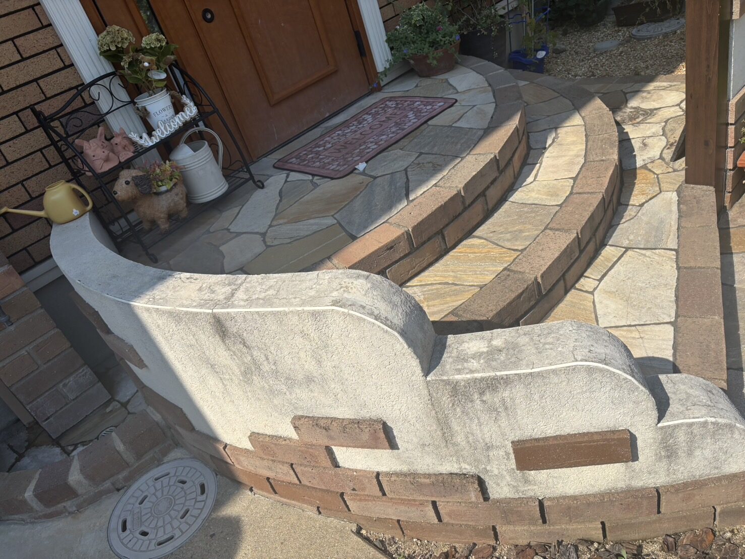 先日、外壁と屋根を塗装してもらった際に、土間ポーチのブロック部分が浮いて動いているのが気になり、今後のためにも一緒にお願いすることにしました。