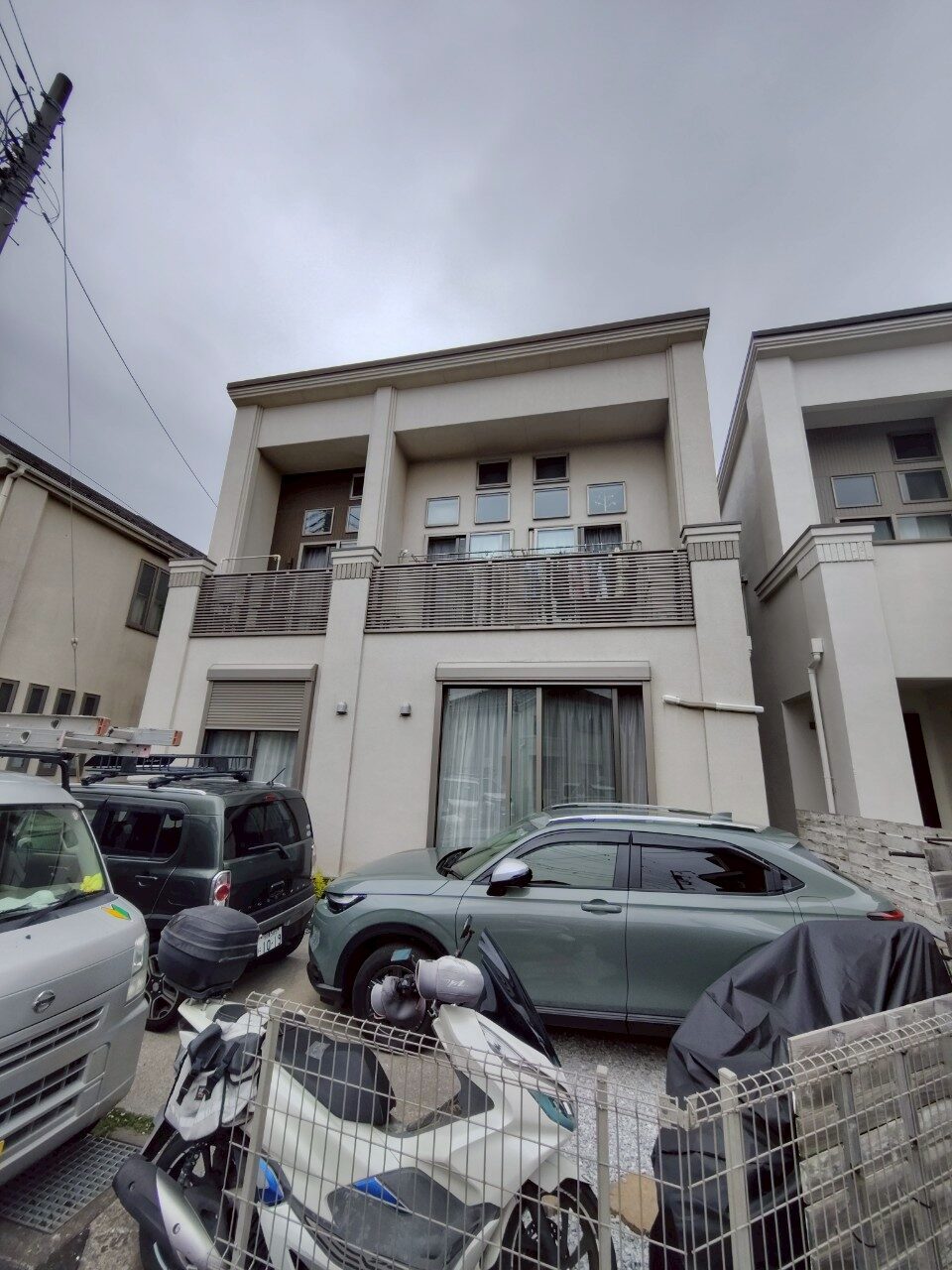 大和市福田のS様より、外壁のメンテナンスと屋根の耐久性向上についてご相談をいただきました。 外壁のモルタルは、経年による汚れや細かなクラック(ひび割れ)から水分が浸入しやすい状態だったため、高い防水性と耐候性を誇る「菊水ロイヤルシリコン」を選定。 モルタル特有の質感を活かしつつ、汚れに強い艶やかな仕上がりを実現しました。また、屋根は今後のメンテナンスコストを抑えるため、塗装ではなく「ガルバリウム鋼板」によるカバー工法をご提案。 建物全体の遮熱・断熱性能を高めるとともに、シックな色調で外観の印象をグッと引き締めました。16日間の工期を経て、デザイン性と機能性が高い次元で両立した仕上がりとなり、スタッフ一同自信を持ってお引き渡しさせていただきました。