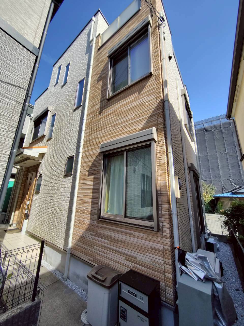 「菊水ロイヤルシリコン」と、**木目部分への「クリア塗装」**を組み合わせることで、新築時を上回るほどの鮮やかな輝きを取り戻しました 。 最大のこだわりは、W様がお気に入りだった木目調サイディングの風合いをそのまま活かした点です。塗り潰し塗装ではなく、透明な保護膜を形成する「クリア塗装」を施したことで、木目の美しい色合いや深みを完璧に再現・維持することに成功しました 。これにより、木目パネルが持つ本来の温かみが復活し、建物全体の高級感を大きく引き上げています 。 白い外壁部分についても、緻密な塗膜を形成するシリコン塗料によって重厚な光沢を与え、木目アクセントとのコントラストを際立たせることで、モダンで立体的な外観デザインを強調しました 。雨樋やシャッターボックスなどの付帯部も細部まで丁寧に仕上げ、防水機能の向上だけでなく、意匠性と耐久性を極限まで高めた「スターペイント品質」の仕上がりとなっています 。