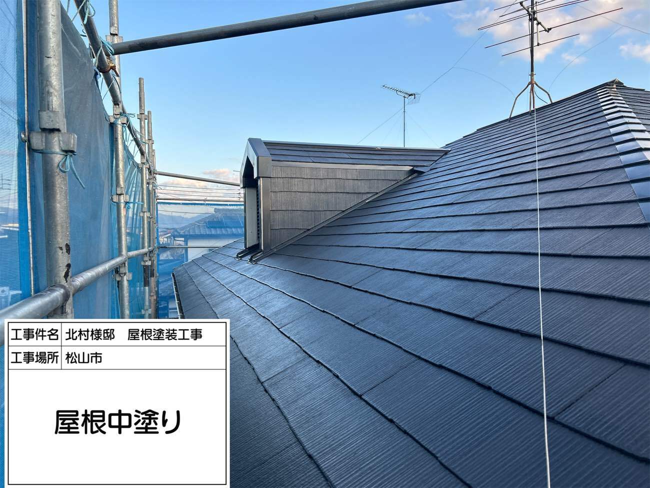上塗りにはSPパワーサーモSiを2回塗りで施工し、遮熱性能と耐久性を最大限に引き出しました。塗膜の厚みや均一性にも細心の注意を払い、見た目の美しさだけでなく、機能性にもこだわった仕上がりとなっています。